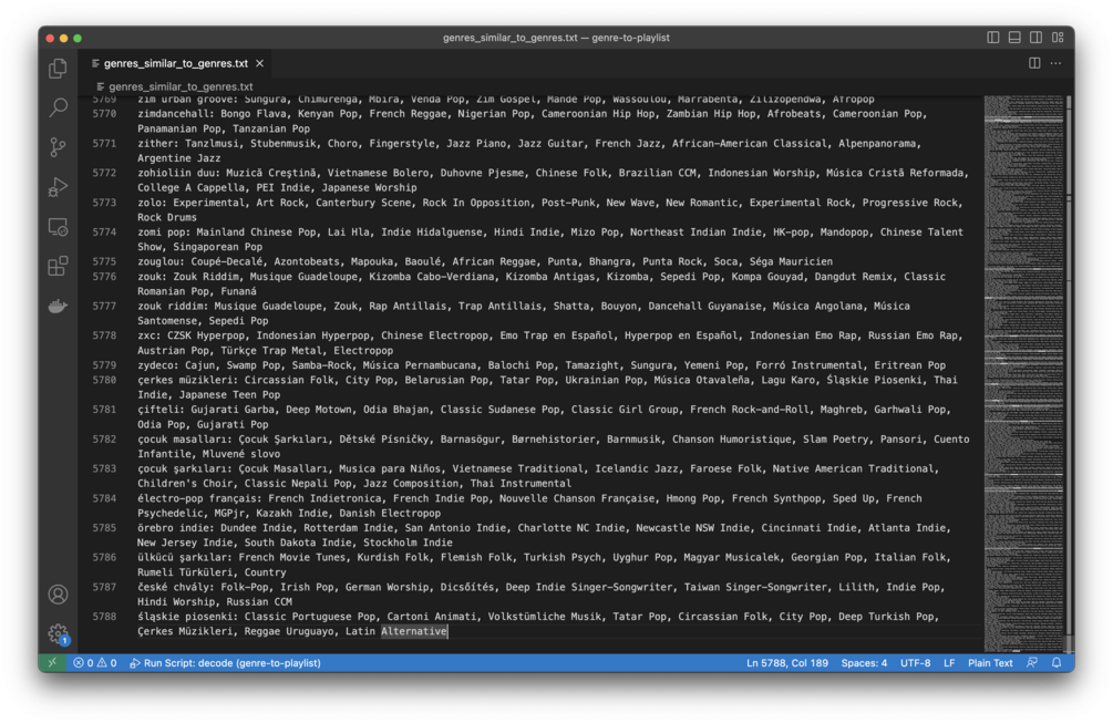 List of ~6000 Spotify genres, and for each genre, a list of similar music genres.